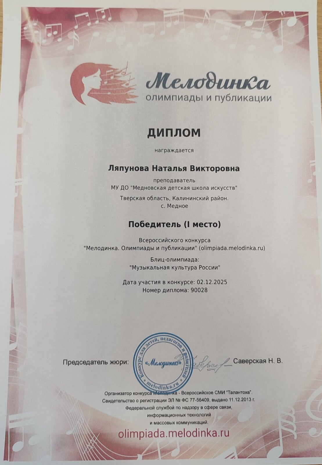 170521, Тверская область, Калининский район, с. Медное, ул. Школьная д.32